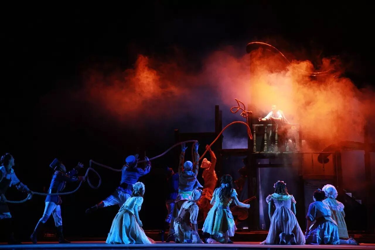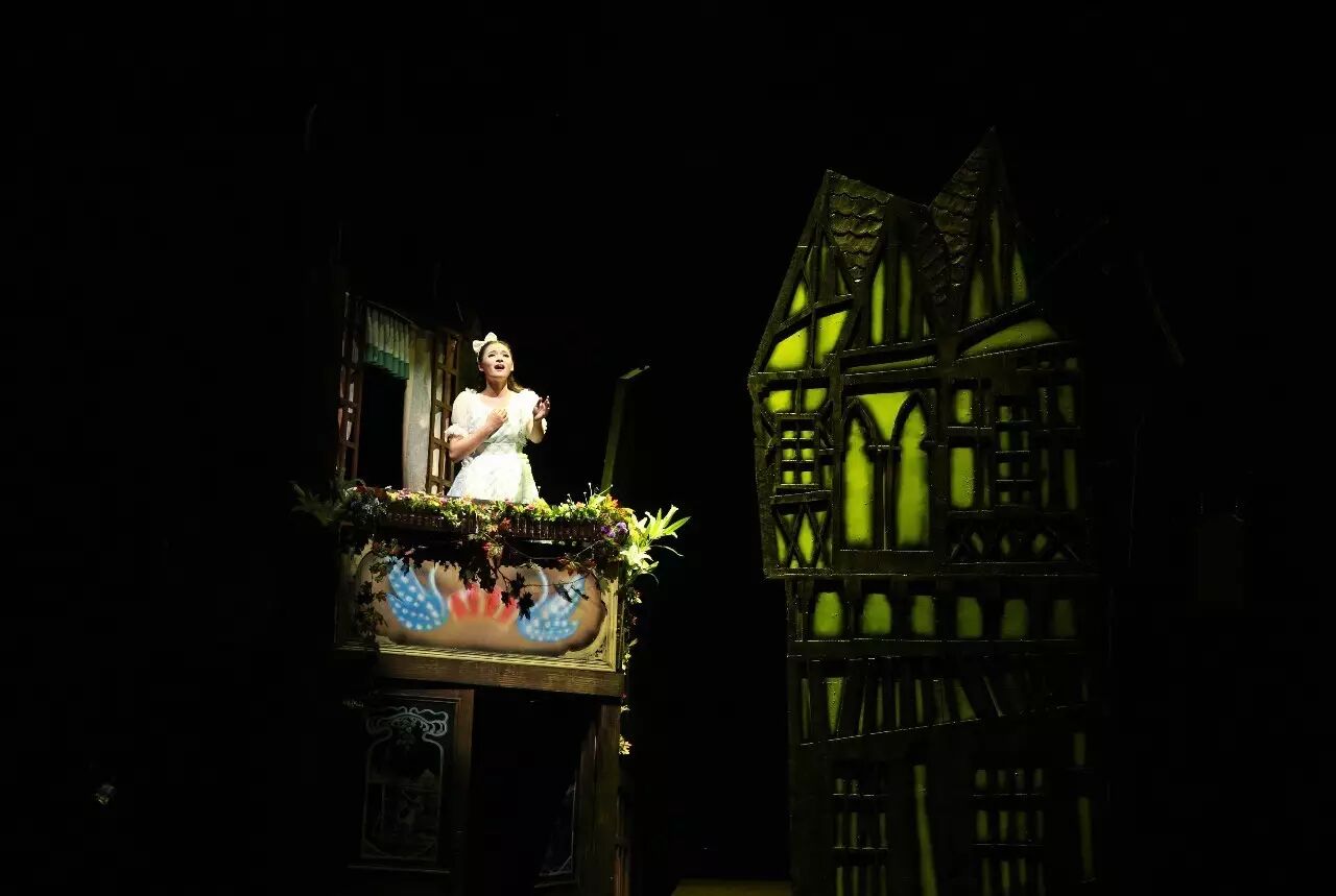 如此精英的制作团队,果然不负众望地献上了极具震撼力的奇幻舞台。刚刚开场,主角莱奥尼在众目睽睽之下由萌猫秒变帅小伙儿的场面,就已经让观众们瞪大了眼睛。灯光和多媒体巧妙助力场景转换和气氛渲染,使得观众一时如身临魔幻的森林,一时如置身热闹的小镇。第二幕中,“天鹅皇后”旅店燃起大火,并在舞台上逐渐毁灭、崩塌的场景,更是让在场的观众忍不住倒吸一口气。如此逼真的场面,在音乐剧的舞台上可以说是极为罕见的。